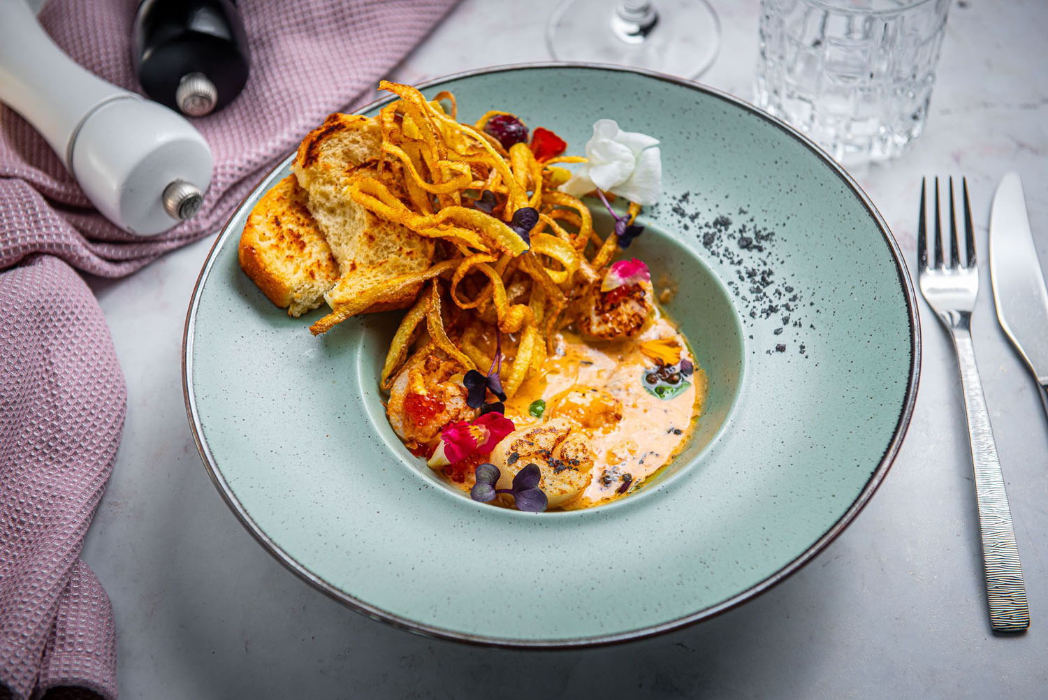 cremant kastike/kirjolohenmäti/rapea brioche/perunapesä