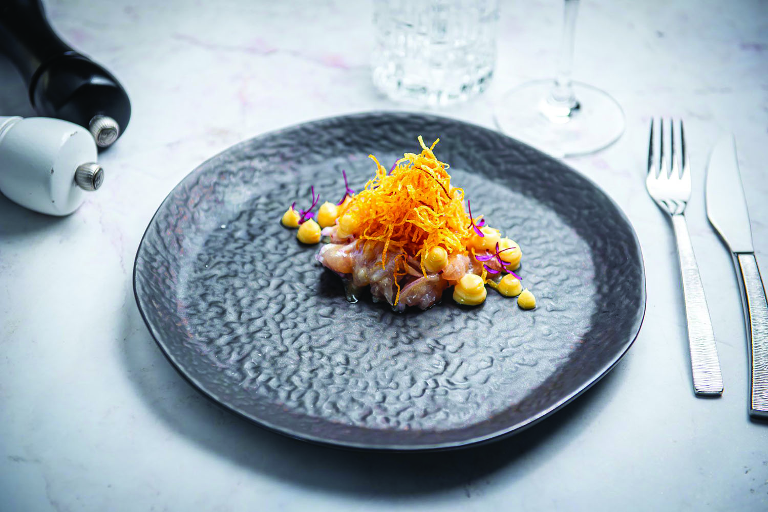 Miso ceviche | lemon mayonnaise | potato threads | radish